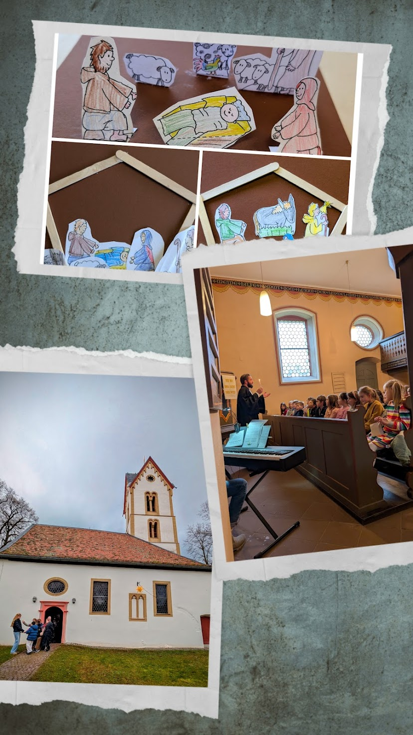 Zu einem gemeinschaftlichen Abschluss mit Blick auf das bevorstehende Weihnachtsfest, gingen alle Klassen am letzten Schultag des Jahres 2025 in die evangelische Kirche Siefersheim. Pfarrer Mankel stellte sich dort der aufgeregten Schülerschar und führte durch ein kleines, von Religions- & Musiklehrerinnen zusammengestelltes Programm. Einige Kinder musizierten auf ihren Instrumenten (Trompete, Blockflöte, Keyboard), andere führten ein kleines Krippen-Klangspiel vor, welches der Pfarrer reflektierte und der Rest sang aus vollem Halse die eingeübten Weihnachtslieder. So fand das Jahr einen bunt fröhlichen Abschluss!